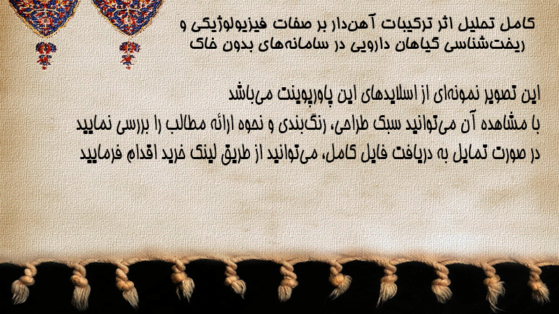 پاورپوینت کامل تحلیل اثر ترکیبات آهندار بر صفات فیزیولوژیکی و ریختشناسی گیاهان دارویی در سامانههای بدون خاک