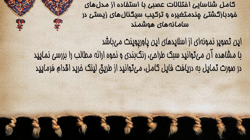 پاورپوینت کامل شناسایی اختلالات عصبی با استفاده از مدلهای خودبازگشتی چندمتغیره و ترکیب سیگنالهای زیستی در سامانههای هوشمند