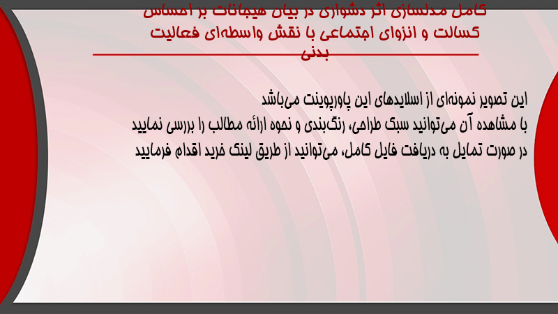 پاورپوینت کامل مدلسازی اثر دشواری در بیان هیجانات بر احساس کسالت و انزوای اجتماعی با نقش واسطهای فعالیت بدنی