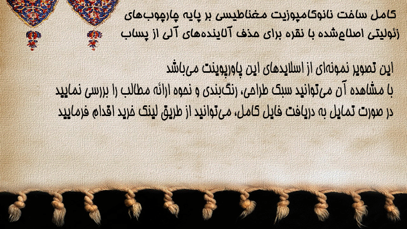 پاورپوینت کامل ساخت نانوکامپوزیت مغناطیسی بر پایه چارچوبهای زئولیتی اصلاحشده با نقره برای حذف آلایندههای آلی از پساب
