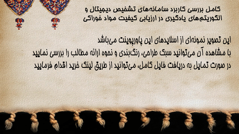 پاورپوینت کامل بررسی کاربرد سامانههای تشخیص دیجیتال و الگوریتمهای یادگیری در ارزیابی کیفیت مواد خوراکی