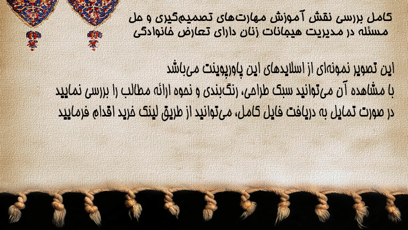 پاورپوینت کامل بررسی نقش آموزش مهارتهای تصمیمگیری و حل مسئله در مدیریت هیجانات زنان دارای تعارض خانوادگی