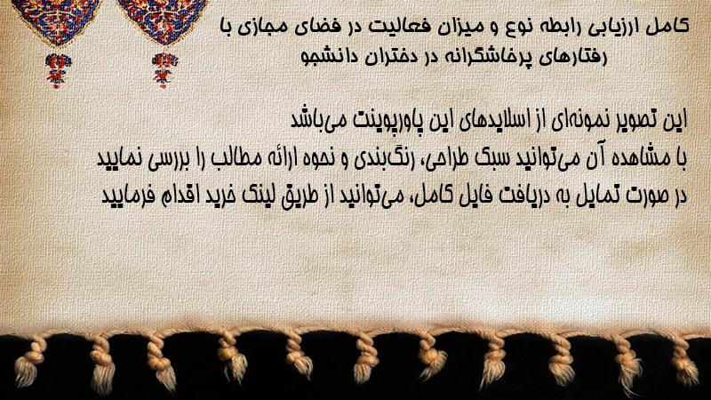 پاورپوینت کامل ارزیابی رابطه نوع و میزان فعالیت در فضای مجازی با رفتارهای پرخاشگرانه در دختران دانشجو