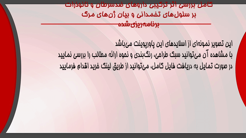 پاورپوینت کامل بررسی اثر ترکیبی داروهای ضدسرطان و نانوذرات بر سلولهای تخمدانی و بیان ژنهای مرگ برنامهریزیشده