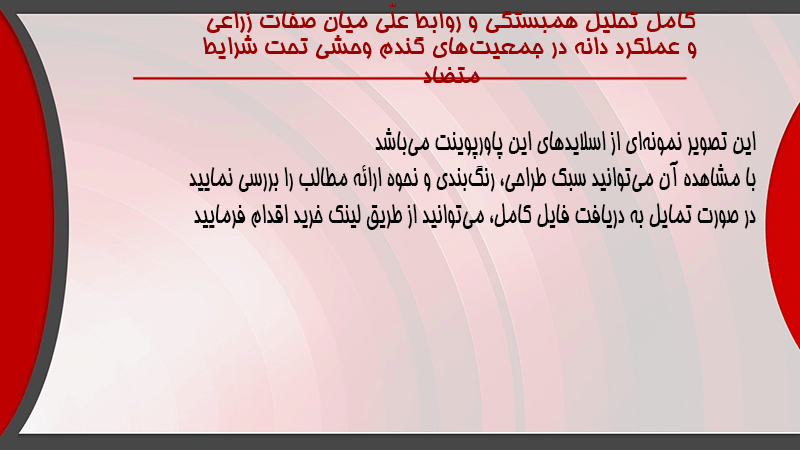 پاورپوینت کامل تحلیل همبستگی و روابط علّی میان صفات زراعی و عملکرد دانه در جمعیتهای گندم وحشی تحت شرایط متضاد