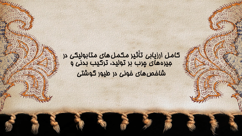 پاورپوینت کامل ارزیابی تأثیر مکملهای متابولیکی در جیرههای چرب بر تولید، ترکیب بدنی و شاخصهای خونی در طیور گوشتی