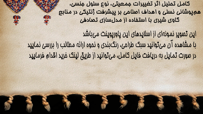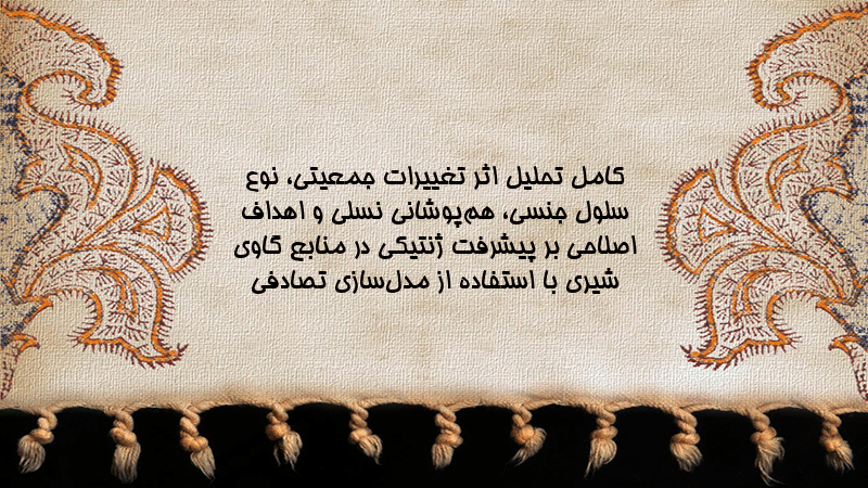پاورپوینت کامل تحلیل اثر تغییرات جمعیتی، نوع سلول جنسی، همپوشانی نسلی و اهداف اصلاحی بر پیشرفت ژنتیکی در منابع گاوی شیری با استفاده از مدلسازی تصادفی