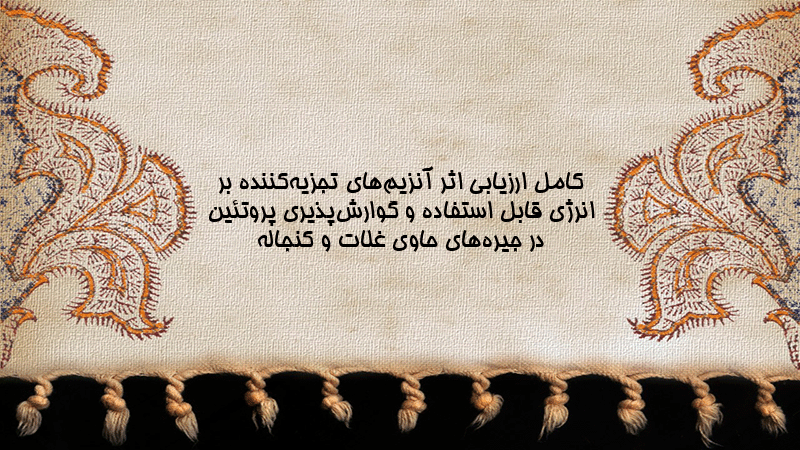 پاورپوینت کامل ارزیابی اثر آنزیمهای تجزیهکننده بر انرژی قابل استفاده و گوارشپذیری پروتئین در جیرههای حاوی غلات و کنجاله