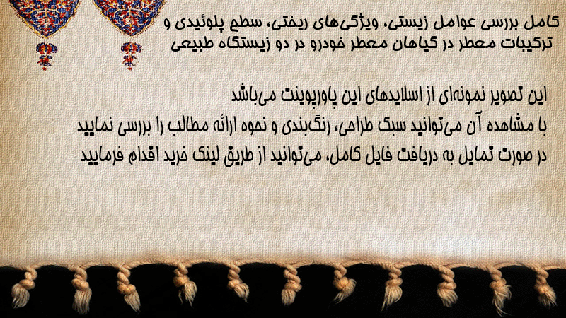 پاورپوینت کامل بررسی عوامل زیستی، ویژگیهای ریختی، سطح پلوئیدی و ترکیبات معطر در گیاهان معطر خودرو در دو زیستگاه طبیعی