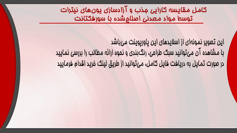 پاورپوینت کامل مقایسه کارایی جذب و آزادسازی یونهای نیترات توسط مواد معدنی اصلاحشده با سورفکتانت
