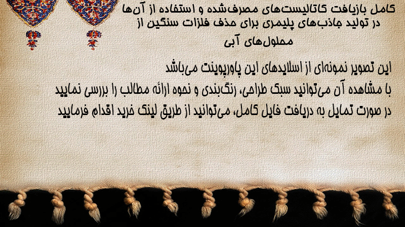 پاورپوینت کامل بازیافت کاتالیستهای مصرفشده و استفاده از آنها در تولید جاذبهای پلیمری برای حذف فلزات سنگین از محلولهای آبی