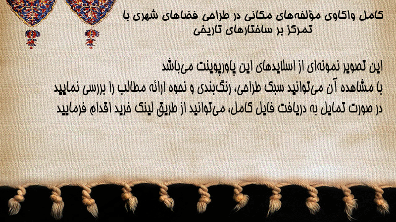 پاورپوینت کامل واکاوی مؤلفههای مکانی در طراحی فضاهای شهری با تمرکز بر ساختارهای تاریخی