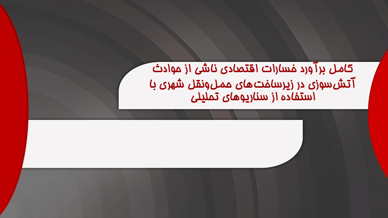 پاورپوینت کامل برآورد خسارات اقتصادی ناشی از حوادث آتشسوزی در زیرساختهای حملونقل شهری با استفاده از سناریوهای تحلیلی