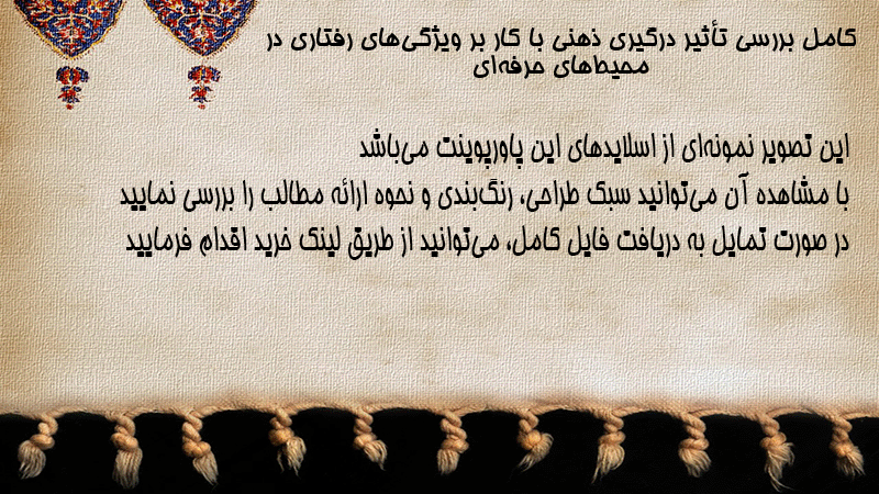 پاورپوینت کامل بررسی تأثیر درگیری ذهنی با کار بر ویژگیهای رفتاری در محیطهای حرفهای