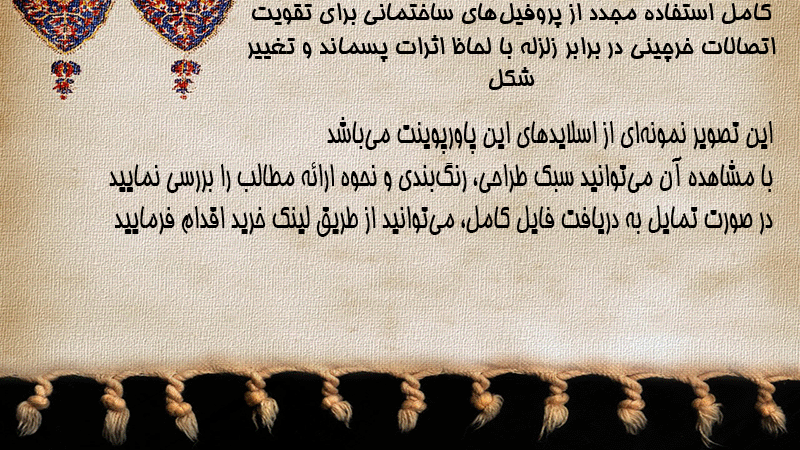 پاورپوینت کامل استفاده مجدد از پروفیلهای ساختمانی برای تقویت اتصالات خرچینی در برابر زلزله با لحاظ اثرات پسماند و تغییر شکل