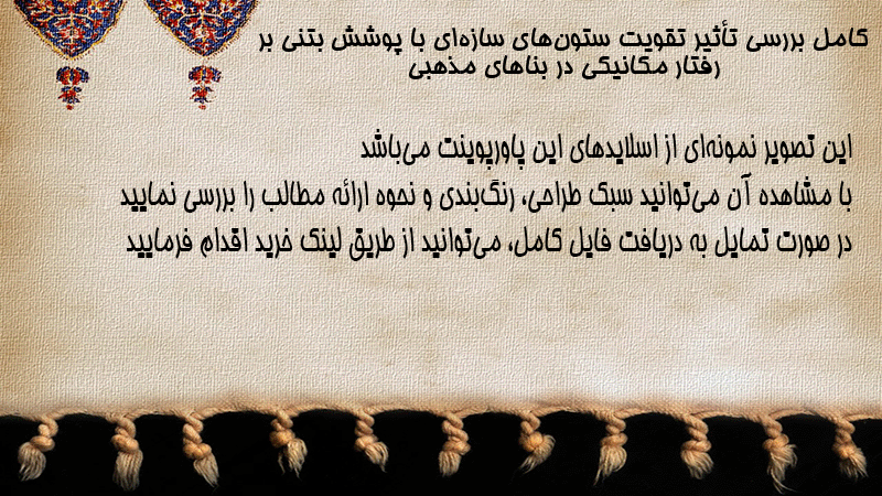 پاورپوینت کامل بررسی تأثیر تقویت ستونهای سازهای با پوشش بتنی بر رفتار مکانیکی در بناهای مذهبی