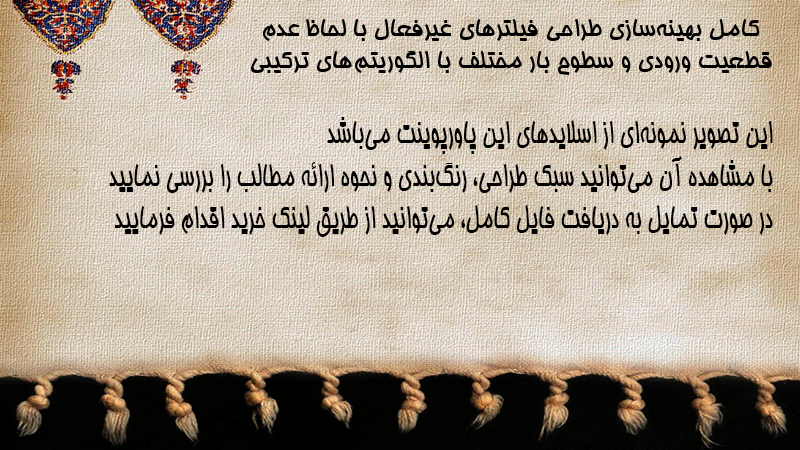 پاورپوینت کامل بهینهسازی طراحی فیلترهای غیرفعال با لحاظ عدم قطعیت ورودی و سطوح بار مختلف با الگوریتمهای ترکیبی
