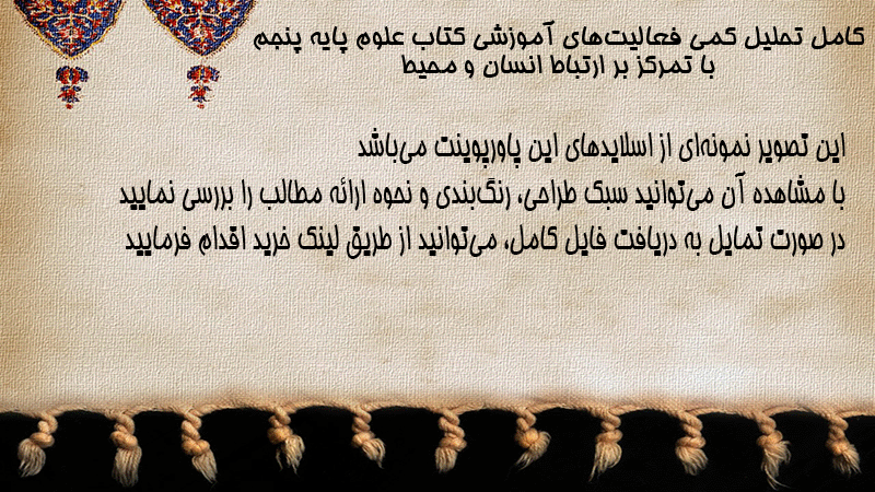 پاورپوینت کامل تحلیل کمی فعالیتهای آموزشی کتاب علوم پایه پنجم با تمرکز بر ارتباط انسان و محیط