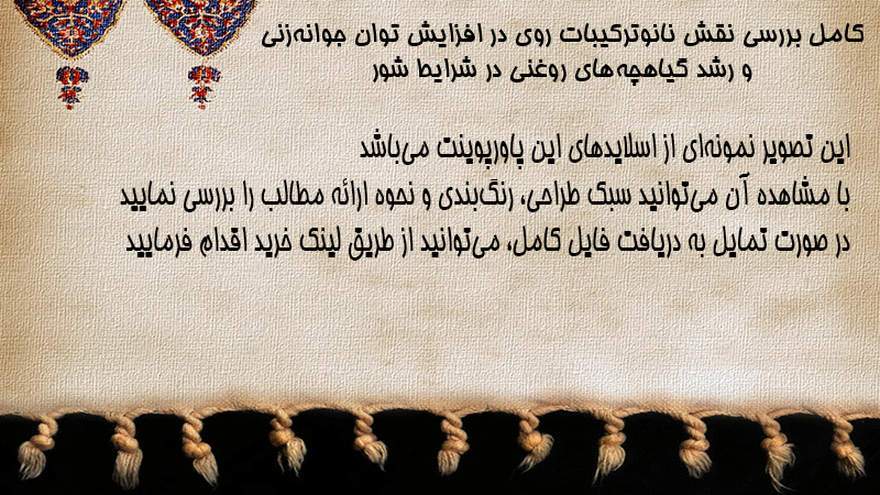 پاورپوینت کامل بررسی نقش نانوترکیبات روی در افزایش توان جوانهزنی و رشد گیاهچههای روغنی در شرایط شور
