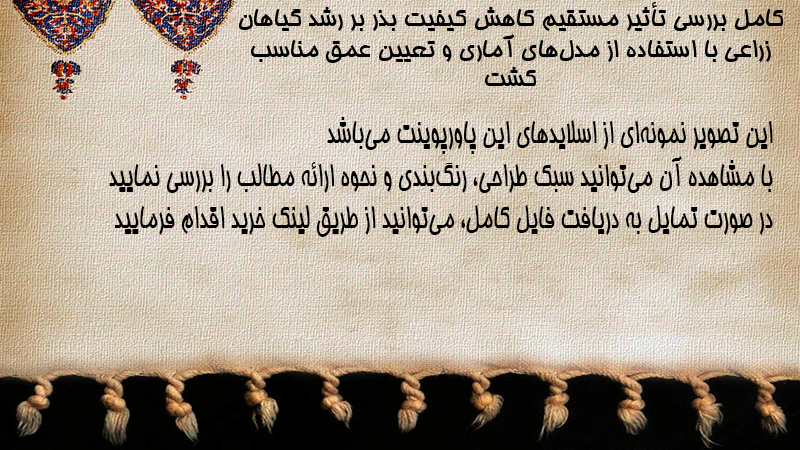 پاورپوینت کامل بررسی تأثیر مستقیم کاهش کیفیت بذر بر رشد گیاهان زراعی با استفاده از مدلهای آماری و تعیین عمق مناسب کشت