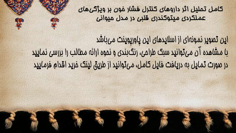 پاورپوینت کامل تحلیل اثر داروهای کنترل فشار خون بر ویژگیهای عملکردی میتوکندری قلبی در مدل حیوانی