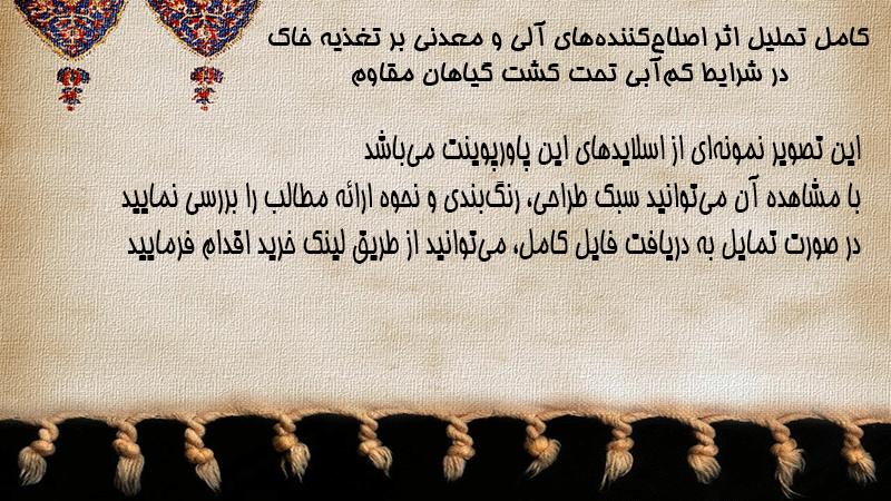 پاورپوینت کامل تحلیل اثر اصلاحکنندههای آلی و معدنی بر تغذیه خاک در شرایط کمآبی تحت کشت گیاهان مقاوم