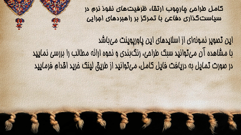 پاورپوینت کامل طراحی چارچوب ارتقاء ظرفیتهای نفوذ نرم در سیاستگذاری دفاعی با تمرکز بر راهبردهای اجرایی