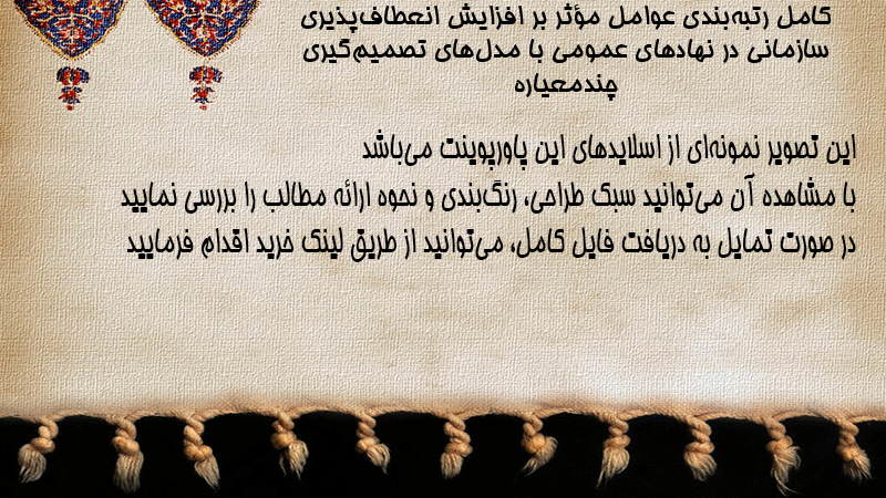 پاورپوینت کامل رتبهبندی عوامل مؤثر بر افزایش انعطافپذیری سازمانی در نهادهای عمومی با مدلهای تصمیمگیری چندمعیاره