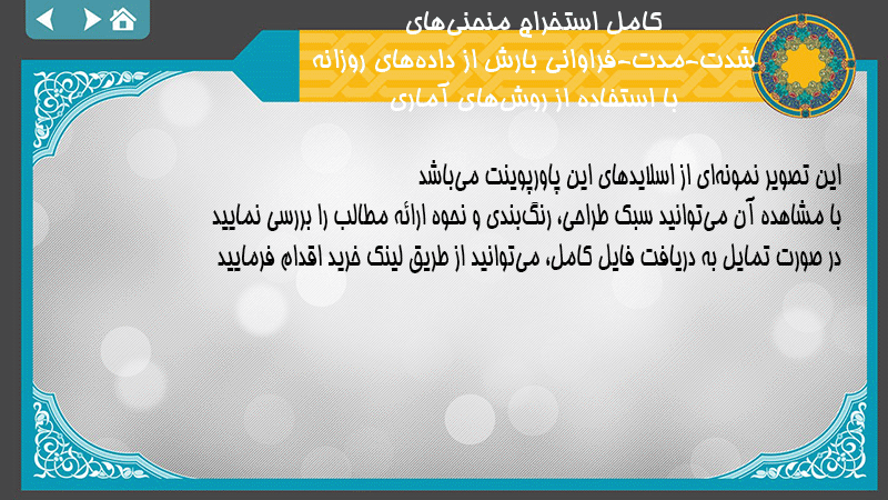 پاورپوینت کامل استخراج منحنیهای شدت-مدت-فراوانی بارش از دادههای روزانه با استفاده از روشهای آماری
