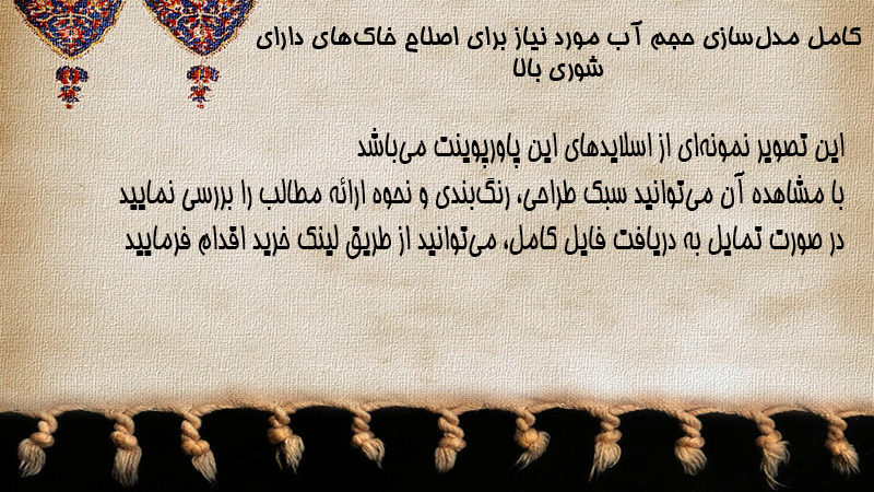 پاورپوینت کامل مدلسازی حجم آب مورد نیاز برای اصلاح خاکهای دارای شوری بالا
