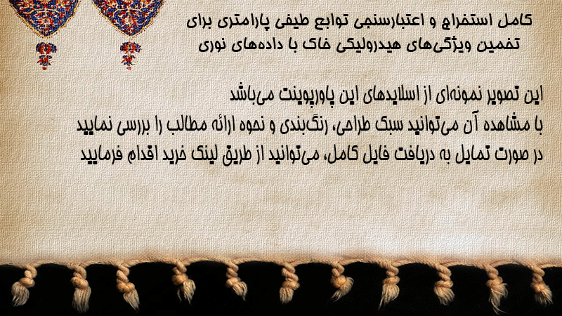 پاورپوینت کامل استخراج و اعتبارسنجی توابع طیفی پارامتری برای تخمین ویژگیهای هیدرولیکی خاک با دادههای نوری