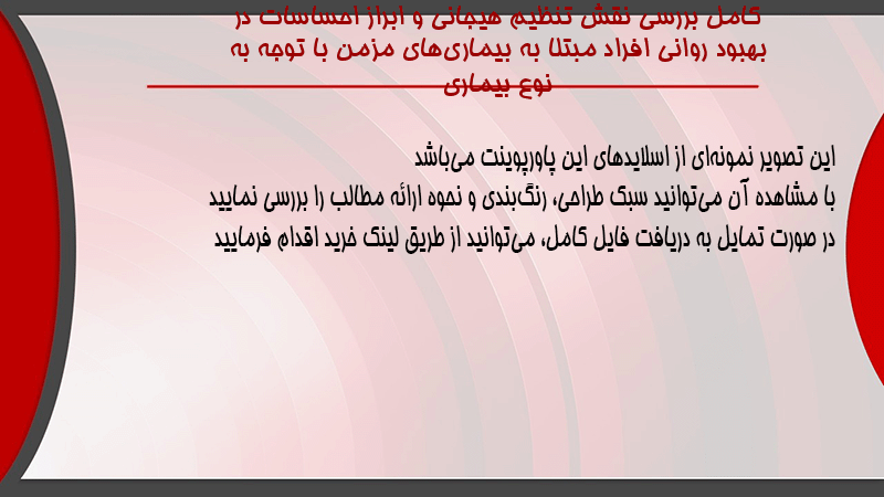 پاورپوینت کامل بررسی نقش تنظیم هیجانی و ابراز احساسات در بهبود روانی افراد مبتلا به بیماریهای مزمن با توجه به نوع بیماری