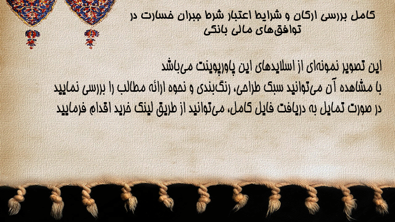 پاورپوینت کامل بررسی ارکان و شرایط اعتبار شرط جبران خسارت در توافقهای مالی بانکی
