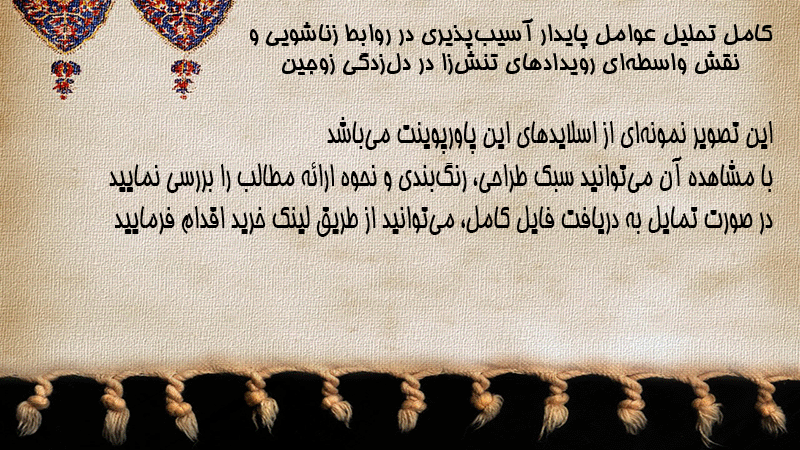 پاورپوینت کامل تحلیل عوامل پایدار آسیبپذیری در روابط زناشویی و نقش واسطهای رویدادهای تنشزا در دلزدگی زوجین
