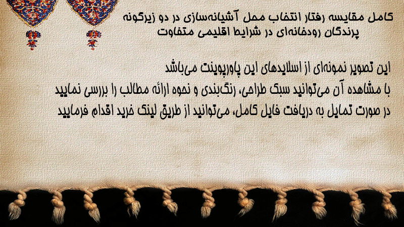 پاورپوینت کامل مقایسه رفتار انتخاب محل آشیانهسازی در دو زیرگونه پرندگان رودخانهای در شرایط اقلیمی متفاوت