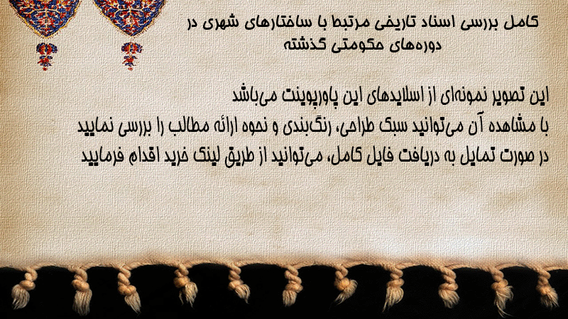پاورپوینت کامل بررسی اسناد تاریخی مرتبط با ساختارهای شهری در دورههای حکومتی گذشته