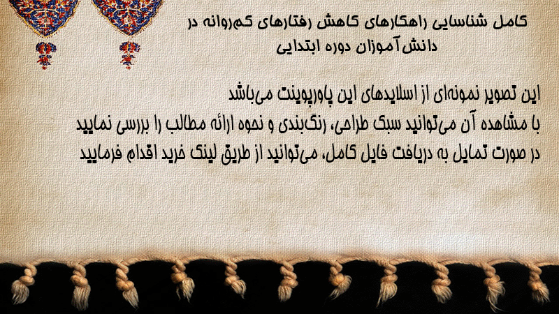 پاورپوینت کامل شناسایی راهکارهای کاهش رفتارهای کمروانه در دانشآموزان دوره ابتدایی