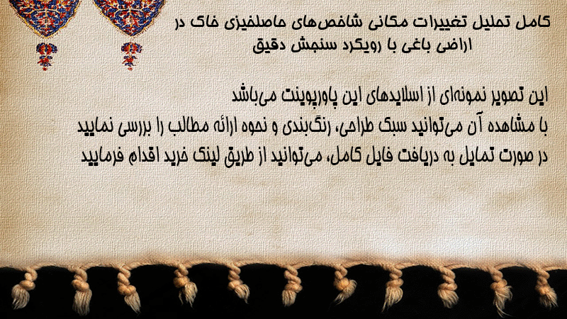 پاورپوینت کامل تحلیل تغییرات مکانی شاخصهای حاصلخیزی خاک در اراضی باغی با رویکرد سنجش دقیق