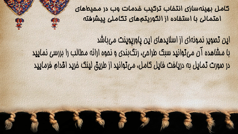 پاورپوینت کامل بهینهسازی انتخاب ترکیب خدمات وب در محیطهای احتمالی با استفاده از الگوریتمهای تکاملی پیشرفته