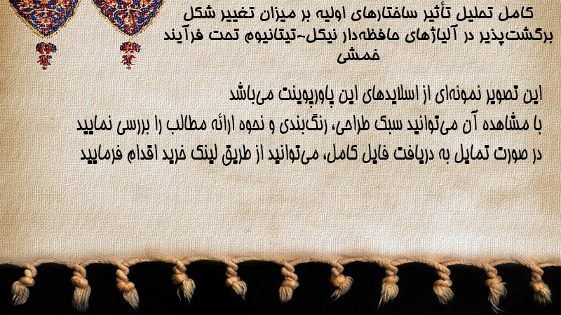 پاورپوینت کامل تحلیل تأثیر ساختارهای اولیه بر میزان تغییر شکل برگشتپذیر در آلیاژهای حافظهدار نیکل-تیتانیوم تحت فرآیند خمشی