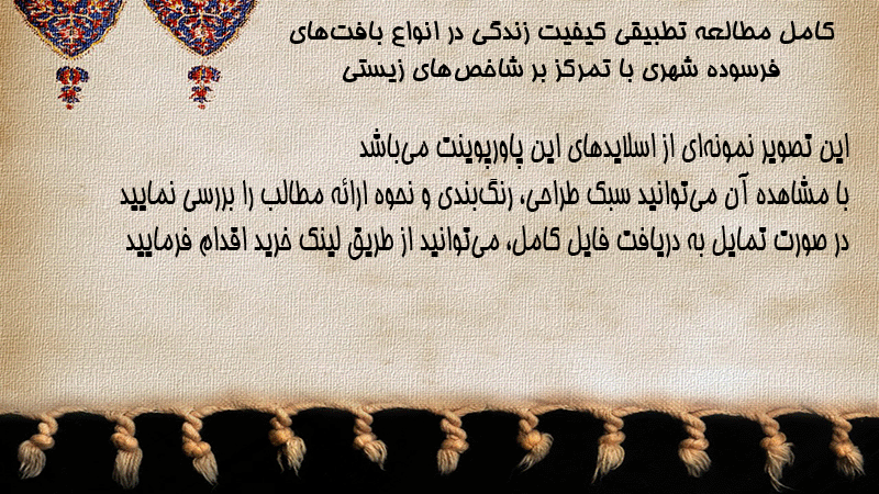 پاورپوینت کامل مطالعه تطبیقی کیفیت زندگی در انواع بافتهای فرسوده شهری با تمرکز بر شاخصهای زیستی