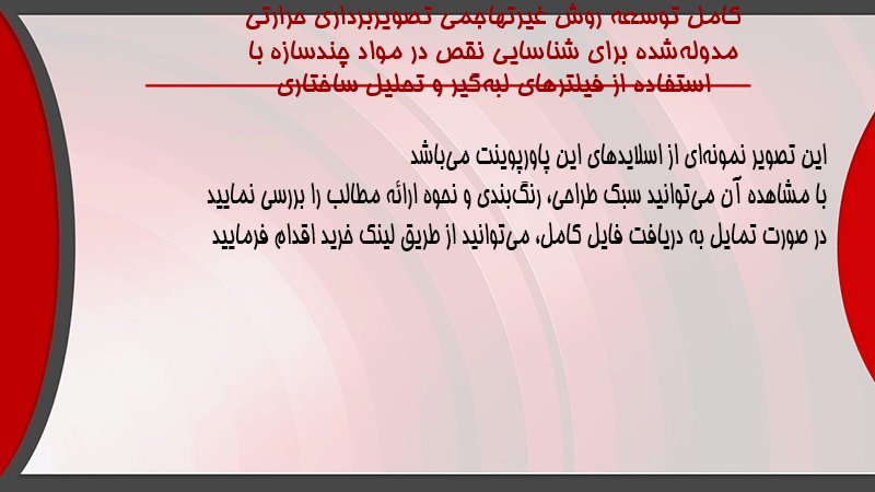پاورپوینت کامل توسعه روش غیرتهاجمی تصویربرداری حرارتی مدولهشده برای شناسایی نقص در مواد چندسازه با استفاده از فیلترهای لبهگیر و تحلیل ساختاری